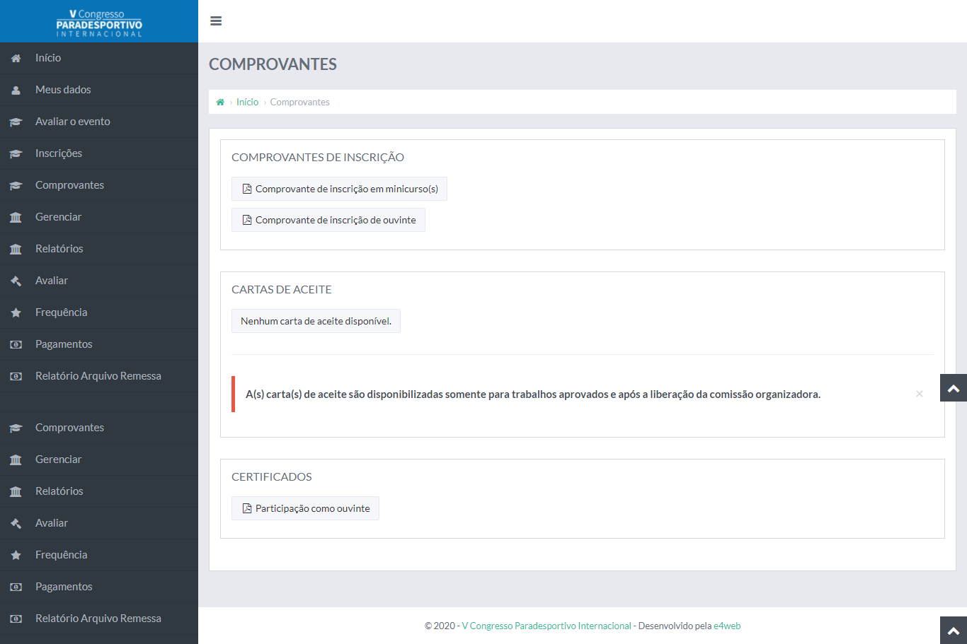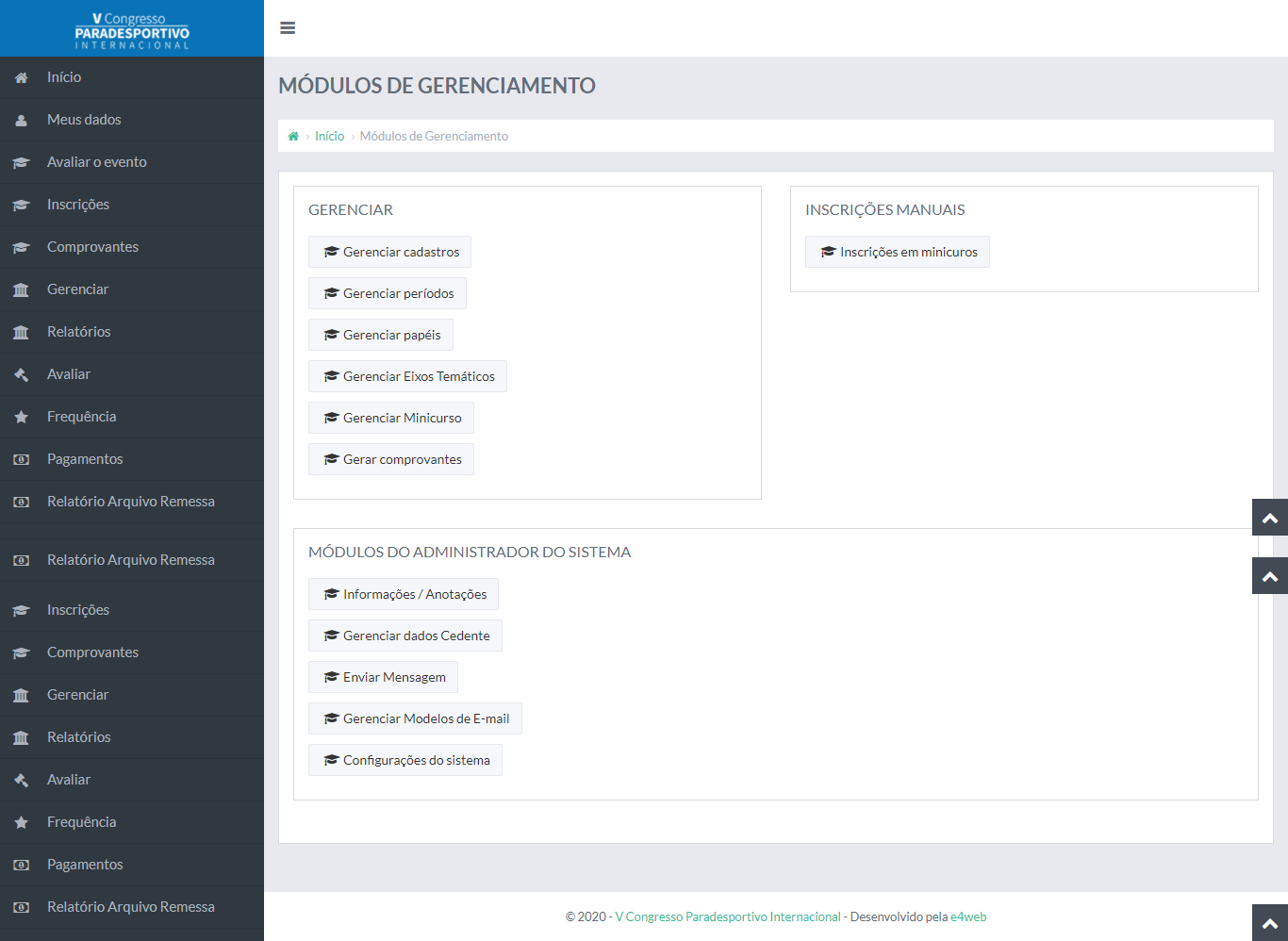 Além do sistema do V Congresso Paradesportivo Internacional, a E4 desenvolveu os sistemas dos seguintes eventos: