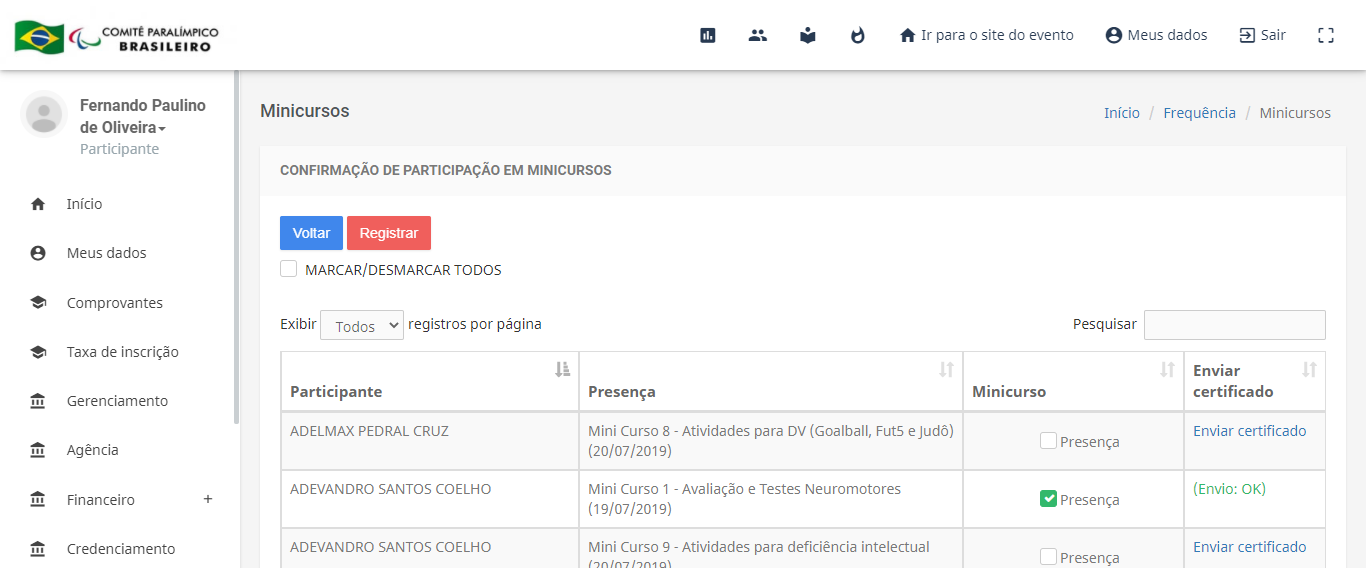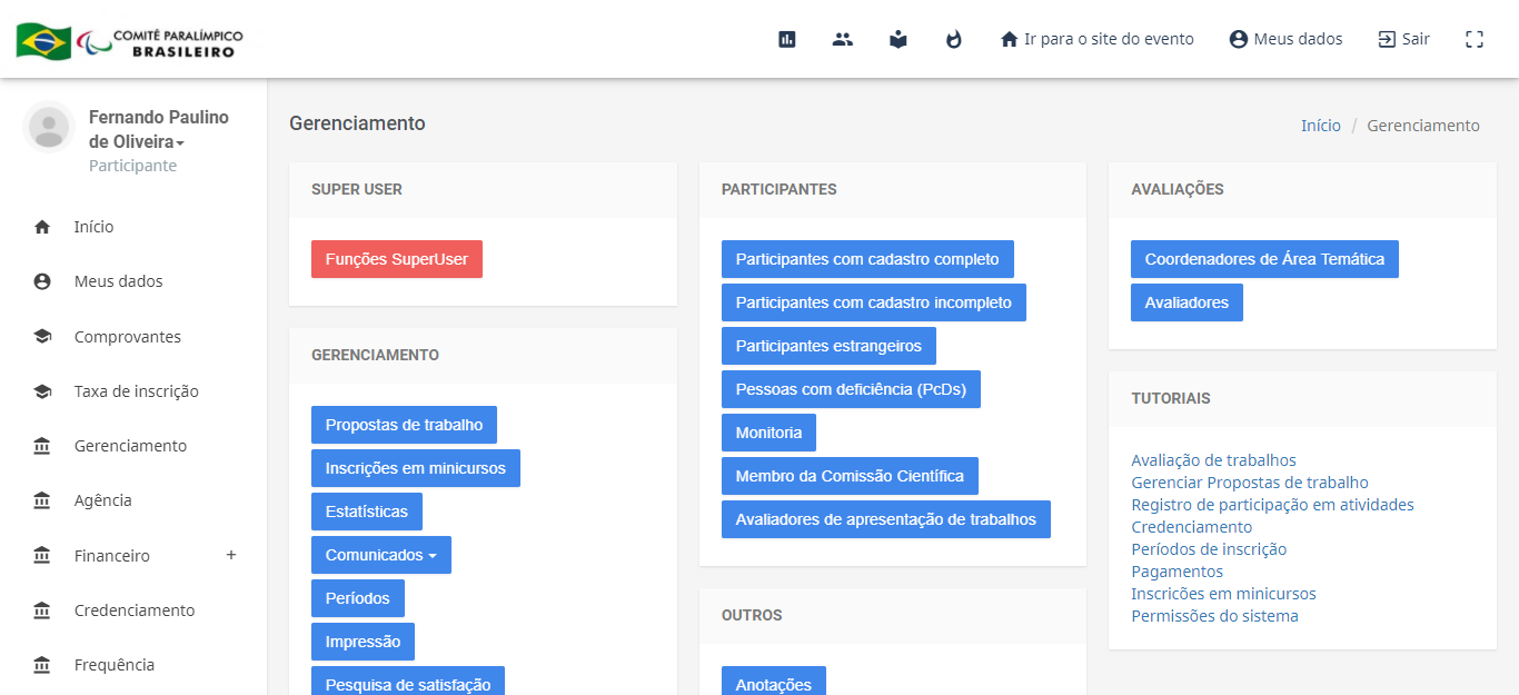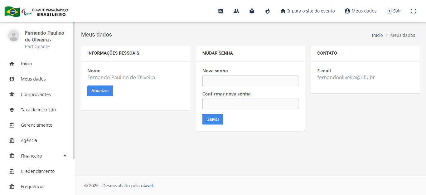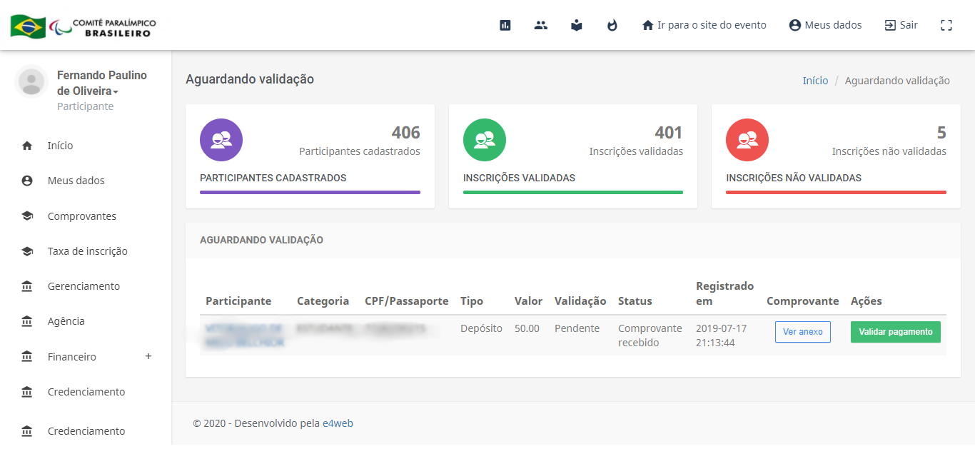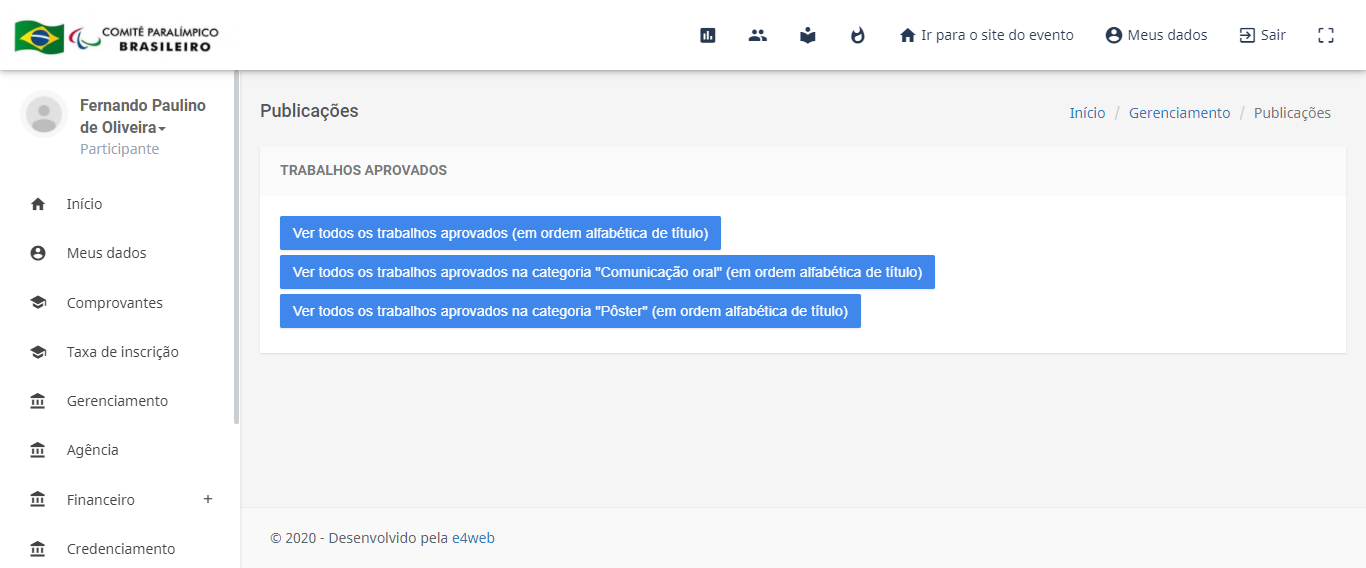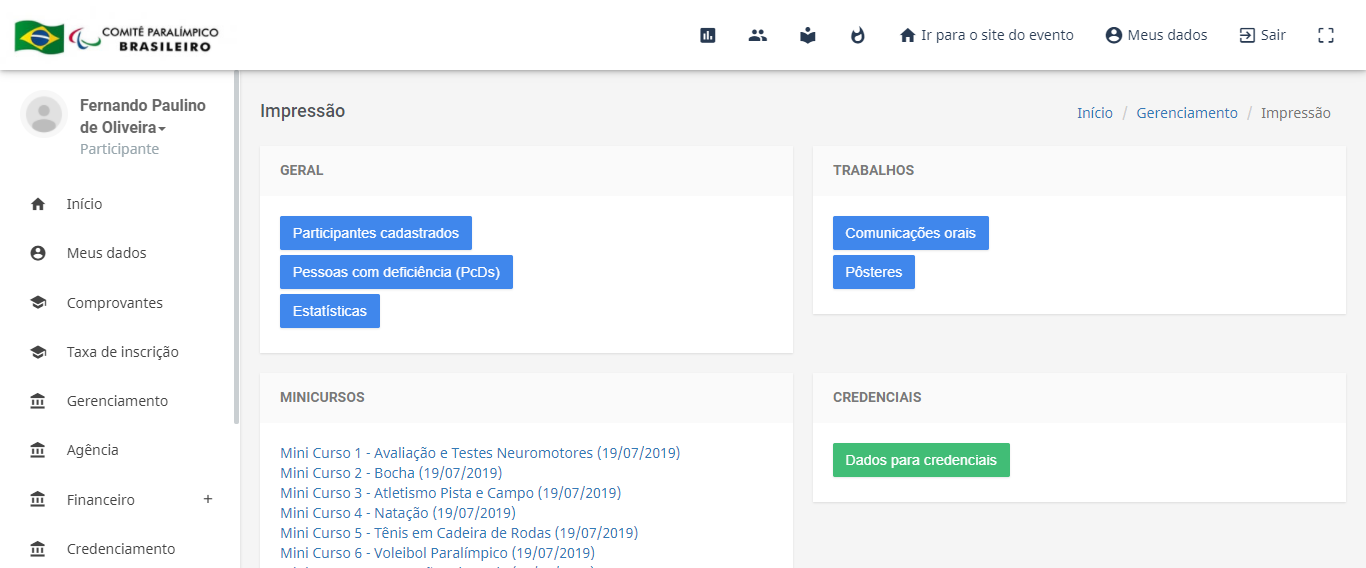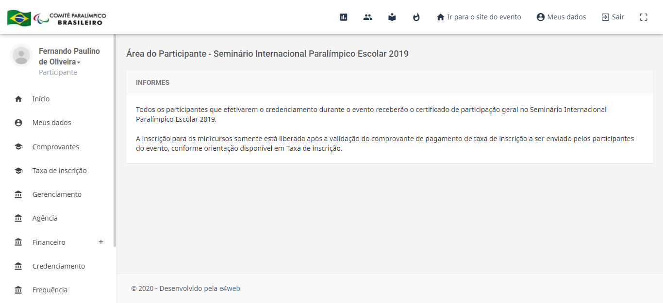 Sistema do Seminário Internacional Paralímpico Escolar 2019 foi um dos projetos mais recentes e mais completos que já desenvolvemos para a Academia Paralímpica